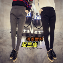 秋冬新款加厚哈伦裤女毛呢显瘦小脚西装裤宽松大码靴裤休闲长裤子