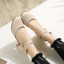高跟凉鞋女夏2016新款学生粗跟鱼嘴单鞋女鞋一字扣带中跟罗马凉鞋