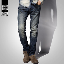 麻吉男士牛仔裤秋季韩版长裤直筒做旧修身小脚裤休闲裤子潮M1252