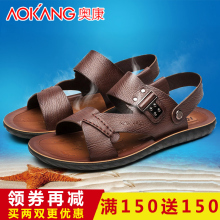 奥康男式凉鞋新款真皮沙滩鞋休闲中老年凉鞋男爸爸夏透气厚底防滑