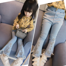 女童牛仔裤2017春装新款韩版儿童喇叭裤女宝宝春秋款刺绣长裤裤子