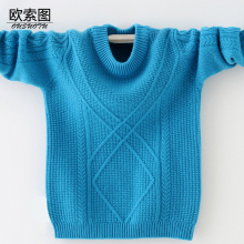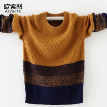 欧索图童装男童毛衣中大童套头衫2016新款儿童针织衫纯羊毛圆领