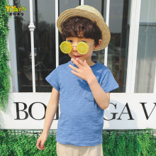 依呀依呀童装儿童纯色短袖T恤2017新款夏装 大口袋上衣宝宝体恤潮
