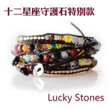 Lotus Mann12星座天然水晶切面443特别款3色五圈半宝石皮绳手链