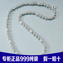 专柜正品999纯银项链女千足白银圆珠链长款毛衣链男士佛珠链定制