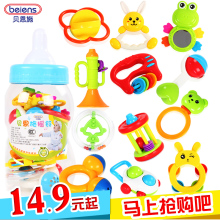 贝恩施婴儿玩具 0-1岁摇铃宝宝益智玩具新生儿手摇铃牙胶摇铃套装