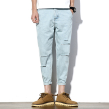夏季薄款九分牛仔裤男束脚9分乞丐修身宽松小脚青少年哈伦裤子潮