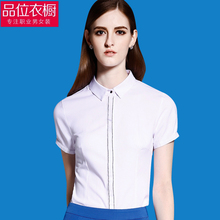 职业装衬衫女短袖2017夏白领称衫简约面试有领小白衫白色衬衣寸衫