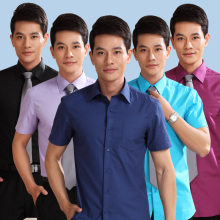 衬衫男短袖商务翻领修身型夏免烫男土韩版职业装大码青年蓝色衬衣