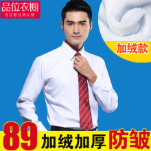 加绒衬衫男士带绒秋冬款保暖商务长袖加厚款白色衬衣男装打底寸衫