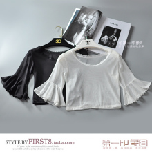 2017网纱透明内搭喇叭袖罩衫打底衫夏季T恤半截短款短装女上衣