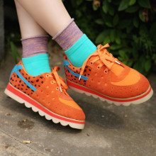 任3双包邮春秋新款休闲彩色拼接纯棉短袜卷边堆堆袜子全棉