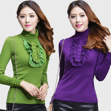 高领打底衫女长袖t血2017秋冬季中长款韩版修身蕾丝秋冬胖mm上衣