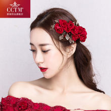 CCTM韩式新娘红色头饰发饰头花饰品敬酒服晚礼服配饰花朵手工头花