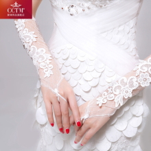 CCTM新款新娘缎面 婚纱礼服白色长款花瓣蕾丝无指纱手套服饰配件