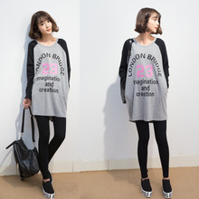 孕妇T恤 韩国代购春装新款长袖字母数字中长宽松拼撞色时尚上衣潮