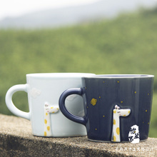 手绘创意立体动物长颈鹿陶瓷水杯牛奶杯马克杯子情侣对杯礼物