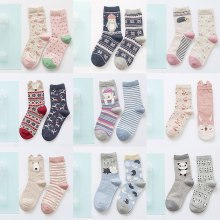 2双盒装组合春季日系可爱卡通图案创意AB女棉袜中筒袜子
