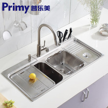 普乐美 304不锈钢水槽三槽带垃圾桶 厨房洗菜盆带刀架刀具 CM904