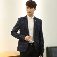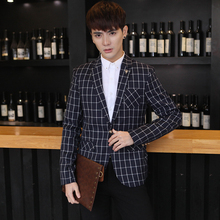 爱南新款男士休闲单西装修身潮流韩版青少年小西服格子外套上衣服