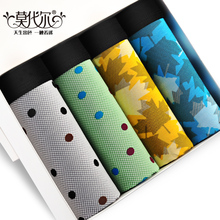 四条装莫代尔男士内裤夏季透气冰丝内裤男平角裤时尚印花四角裤
