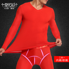 莫代尔男士内衣本命年大红色保暖内衣裤棉质V领薄款秋衣秋裤套装