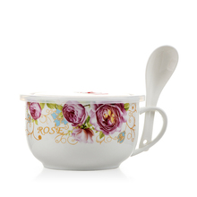 乐活森陶瓷泡面杯 面碗保鲜碗食堂打饭学生带饭有盖饭盒配勺多色
