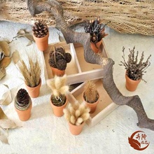 天然干花红陶小摆件迷你拍摄小道具装饰品摆件