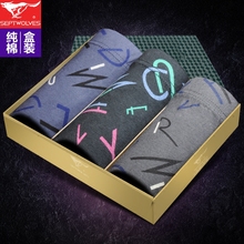 七匹狼纯棉男士内裤男平角裤中年老人全棉肥佬短裤潮青年四角内裤