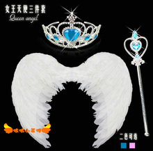 万圣节女童装扮服装羽毛翅膀天使的翅膀粉色白三件套魔法棒幼儿