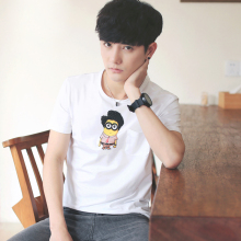 夏季男士短袖t恤纯棉圆领印花半截袖体恤修身韩版潮牌白色上衣服