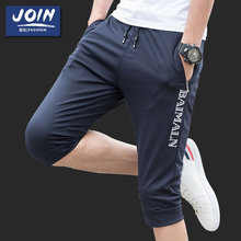 夏季薄款运动短裤休闲中裤男松紧系带七分裤收口针织卫裤哈伦裤男