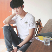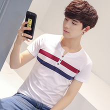 夏装男士短袖t恤 韩版V领半袖修身体恤潮流男装半截袖纽扣上衣服