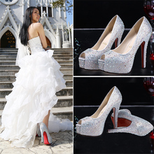 韩版性感夜店高跟鞋2017春季鱼嘴凉鞋恨天高水钻新娘婚鞋女婚纱鞋