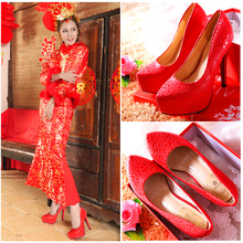 婚鞋超高跟鞋中跟防水台水新娘鞋亮片约会鞋红色单鞋夜场酒吧女