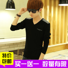 春季男士长袖t恤v领秋衣上衣男装小衫韩版修身纯棉体恤外穿打底衫