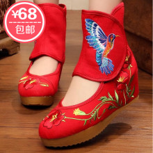 老北京民族风高帮绣花布鞋 内增高复古舞蹈鞋女 高跟春秋短靴婚鞋