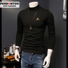 冬季加绒加厚男士长袖T恤 中高领烫金打底衫修身体恤保暖上衣服潮