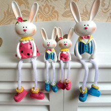 田园装饰摆件树脂吊脚娃娃可爱米菲兔一家新房装饰品开业礼品