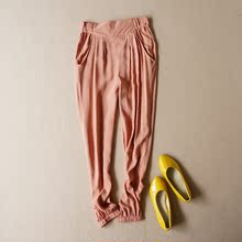 外贸女装 夏季新款女装印度风显瘦松紧腰收口人棉休闲裤长裤