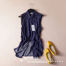 外贸单2016夏季新款女装日系甜美减龄波点翻领无袖人棉衬衫衬衣