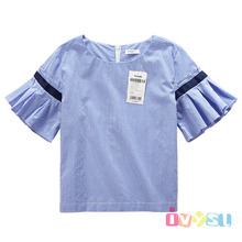 巴拉巴拉女童短袖衬衫喇叭袖衬衣中大童2017夏装新款22182170203