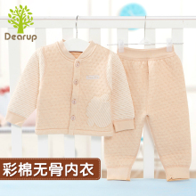 迪尔优品 彩棉保暖羊宝宝内衣套装无骨 婴儿夹棉加厚衣服秋冬款
