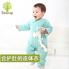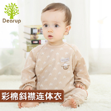 迪尔优品 婴儿连体衣彩棉 长袖纯棉宝宝斜襟爬服哈衣春秋冬保暖睡
