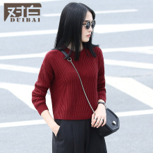 对白春装新款 时尚圆领套头直筒针织衫厚简约短款长袖打底毛衣女