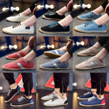 帆布鞋男鞋春季潮懒人鞋情侣休闲鞋亚麻草编布鞋渔夫鞋透气低帮鞋