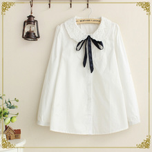 2017春季新款娃娃领衬衫女夏学生蝴蝶结休闲上衣学院风长袖衬衣衫