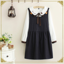娃娃衫字母刺绣领口系带拼色长袖衬衫加绒2017春装新款女装森女系