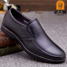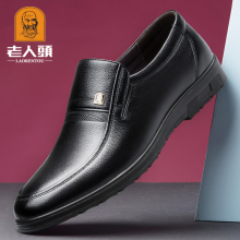老人头男鞋夏季男士商务休闲皮鞋男真皮中老年舒适套脚软皮父亲鞋