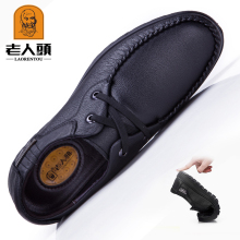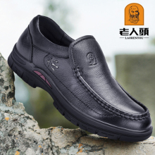 老人头男鞋春夏季男士商务休闲皮鞋舒适套脚头层牛皮日常休闲男鞋